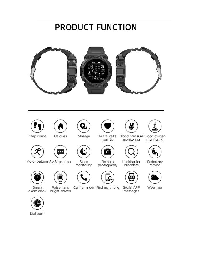 Reloj inteligente deportivo control de la frecuencia card aca y presi n arterial rastreador de Fitness consumo de calor as dispositivo port tilCaracter sticas especiales Monitor de ritmo card acoMonitor de presi n arterialMonitor de ox geno en sangreMonitor de sue oModos multideportePod metro de manoRecordatorio de llamadas o mensajesPantalla de ID de llamadaRecordatorio de informaci n SMS QQ WeChat Skype Facebook Twitter Line WhatsApp Pantalla de iluminaci n autom ticaTipo de alerta Vibraci nControl de m sicaOtras funciones despertador recordatorio de sedentarismo control remoto de la C mara antip rdidaNombre de la aplicaci n FitproGarantia del producto de 10 dias por defecto de fabrica producto incorrecto cantidad incorrecta